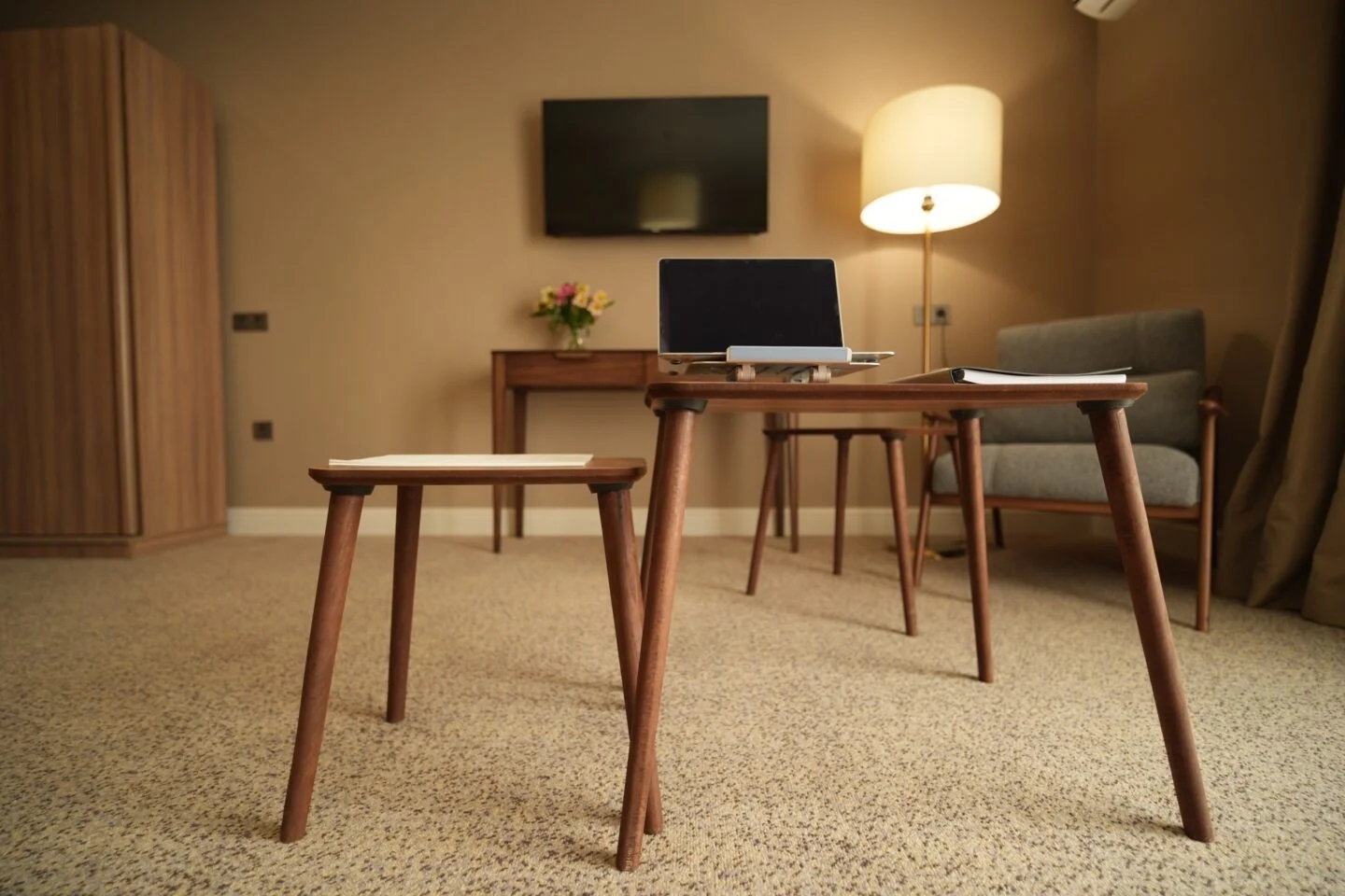- Оборудование: гладильная доска, кондиционер, кофемашина, сейф, телевизор, телефон, утюг, чайный набор посуды, электрочайник